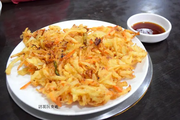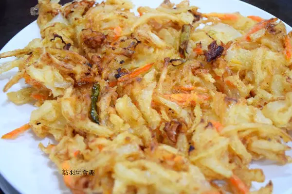 一瓣瓣的洋蔥蔬菜與蝦仁透抽一起炸味道偏甜