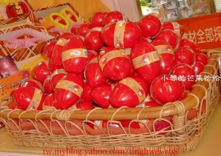 店內陳設了許多的芒果製成品 , 有芒果乾、芒果果醬、