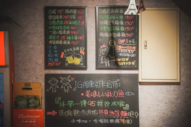 酒單都會寫在店內的小黑板上,最特別的是法國1664白生啤,是外面比較喝不到的風味,很多女生都很喜歡這個味道喔,另外ig限動打卡還會招待好料,大家可別忘了喔~