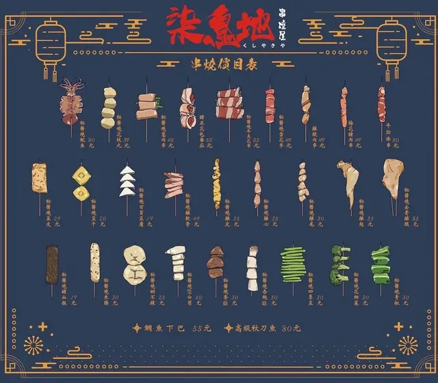 串燒就大辣辣地擺在門口的冷藏櫃內,裏頭的品項也太豐富了吧,瞬間也變成柒息地的活招牌,每個路過的人總會停下來幾眼耶