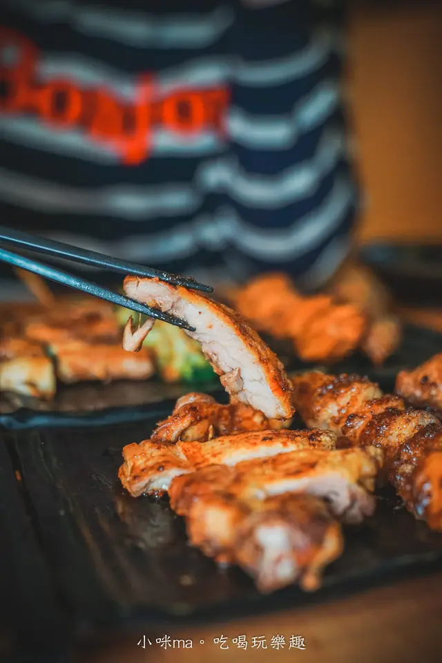 烤雞腿還幫你貼心去骨,出餐前也切成一塊塊的方便食用,雞皮的部分可以再烤入味一點,把油逼出來些,帶點脆度會更誘人