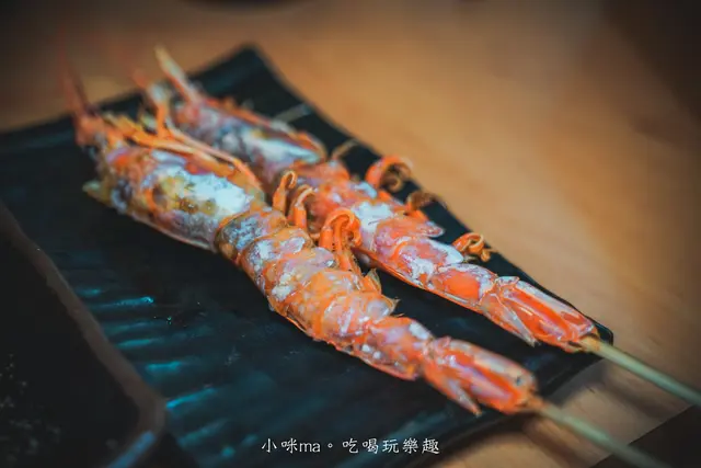 這裡不只有平價的串燒,還有一些烤海鮮,根本就是小型居酒屋,天使紅蝦烤好後還幫你貼心的把蝦殼剪開一道,食用的時候超級好剝開