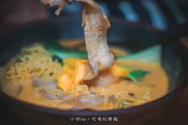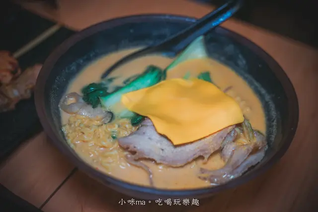 來這裡千萬不用怕吃不飽,來~拉麵給他點起來,這拉麵還有青菜、豬肉、起司當配料,有辣跟不辣可以選,他的辣不是太辣,是辛拉麵那種辣,配上起司提味,有夠好吃啦,配上店家的自製泡菜就是韓國拉麵啊~這一碗我覺得可以兩個人分食才不會太飽,畢竟這裡還有好多好料可以吃耶
