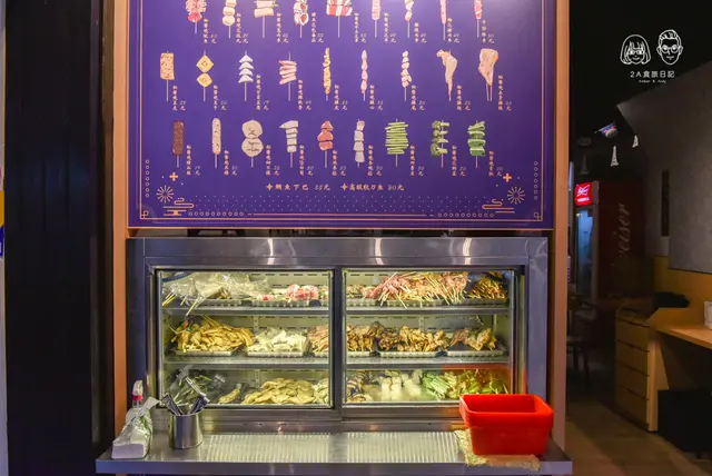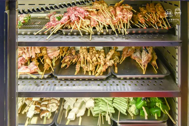 柒息地長春店的串燒就陳列在門口的冷藏櫃裡,陳列方式一目瞭然,且乾淨衛生。