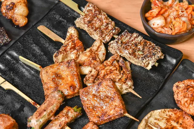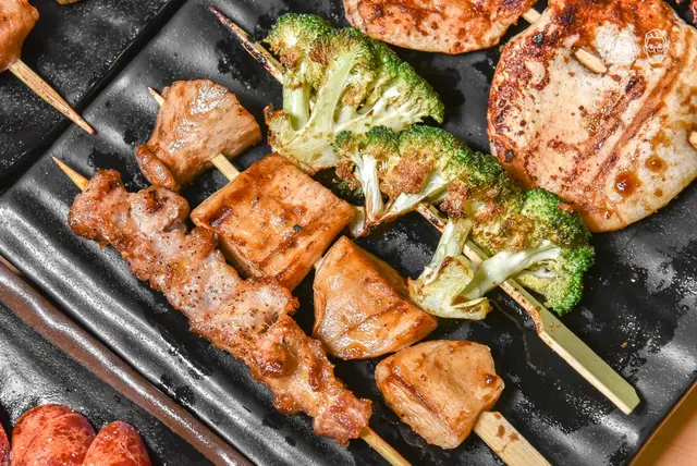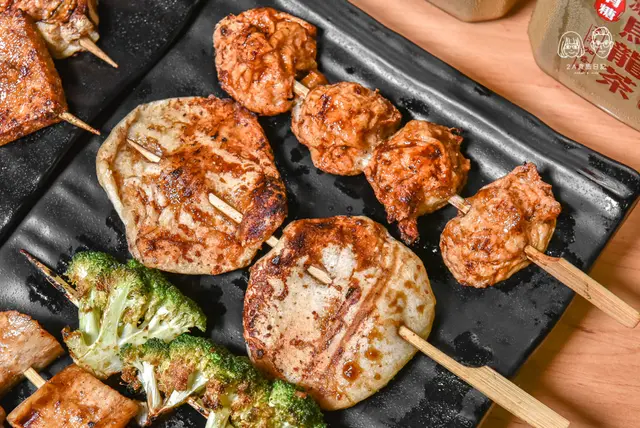 柒息地長春店的串燒為秘醬燒風味,自製的秘醬燒經過長時間的小火熬煮,口味香甜,但又不會太甜膩。