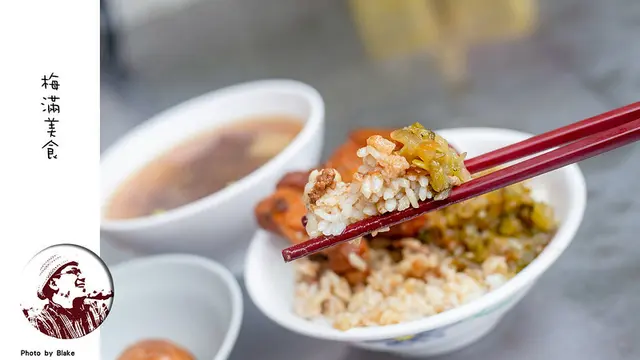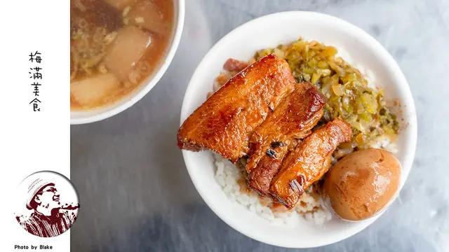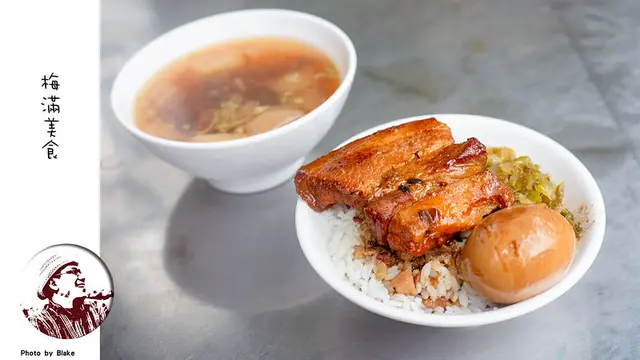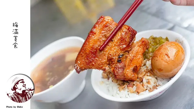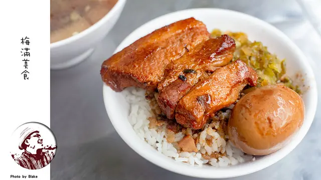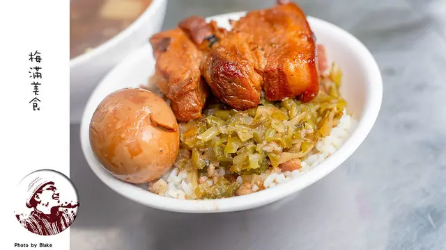 《梅滿美食》就位於台北市大同大龍峒,旁邊就是台北市孔廟,從捷運圓山站2號出口步行過來大約是4分鐘,《梅滿美食》附近就是大龍市場與大龍街夜市,吃的東西也很多,像我很喜歡的重慶豆漿炸蛋餅與一直想去吃的阿仁炒飯都在附近,《梅滿美食》主要就是賣焢肉飯或魯肉飯傳統小吃,營業時間從早上7點就開賣,可以讓人一早就吃到重口味早點。