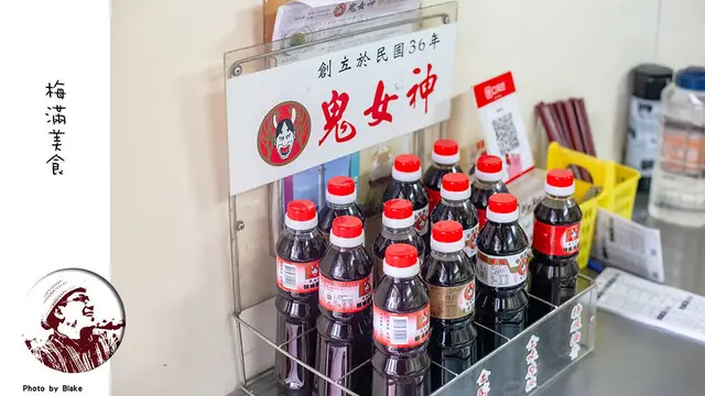 《梅滿美食》整個店裡看起來就很傳統,本身也是間老屋,室內座位數不多,戶外也有幾張桌子,我個人還蠻喜歡坐在外面,除了採光不錯外,就有一種在老城區吃著傳統美食的感覺,《梅滿美食》比較特別的是它們的滷汁都會加上鬼女神醬油,就好像台中蕭爌肉飯擺上大川醬油招牌,但我還真的不知道鬼女神醬油,上網查才知道是大有來頭的大稻埕老醬油廠。