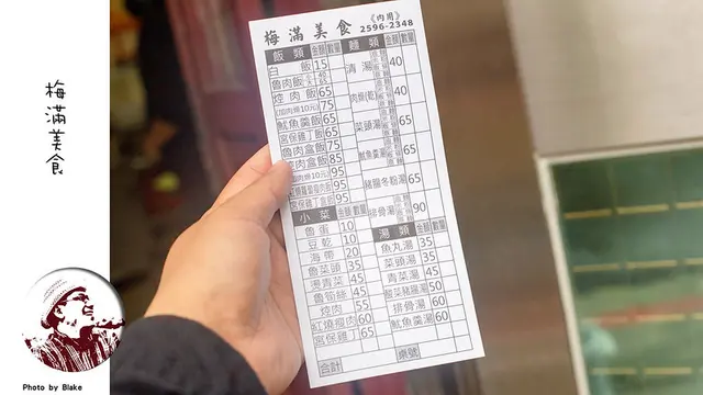 點餐方式是直接拿梅滿美食菜單劃單,梅滿美食菜單上面最多人推薦就是魯肉飯、焢肉飯、菜頭湯與排骨湯,主要是用滷汁去滷的品項都很熱門,像是魯豆乾、魯菜頭與紅燒瘦肉也是很不錯,只是當天有些狀況魯菜頭與紅燒瘦肉要到11點才出鍋,有點遺憾沒吃到,整體來說價格來說焢肉飯65元也不算太貴,雖然也沒到多便宜。
