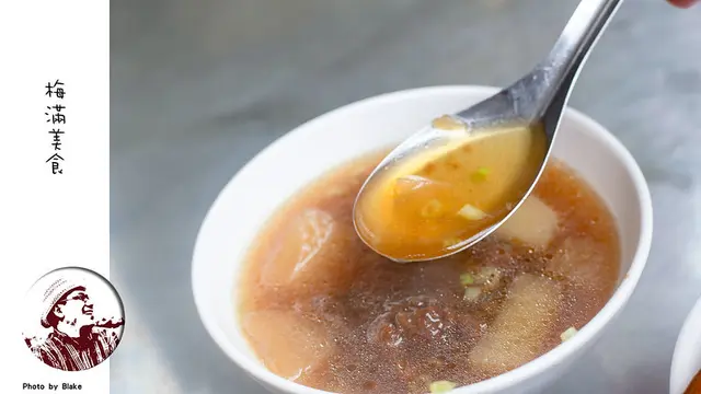 梅滿美食排骨湯真的超強的,菜頭本身是另一鍋燉煮,排骨酥的部份則是用蒸煮的方式,點餐的時候就把兩個合在一起,喝起來真的超強的,湯頭很甘醇,蘿蔔也是很入味,咬下去還會有水份的感覺,排骨酥本身也是很入味,肉質是比硬一些,但也好吃,整個大推啊!如果拿來做排骨酥麵應該也很好吃。