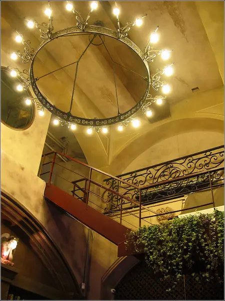 200坪挑高寬敞的用餐空間, 昏暗的環境下用吊燈、壁燈採光
