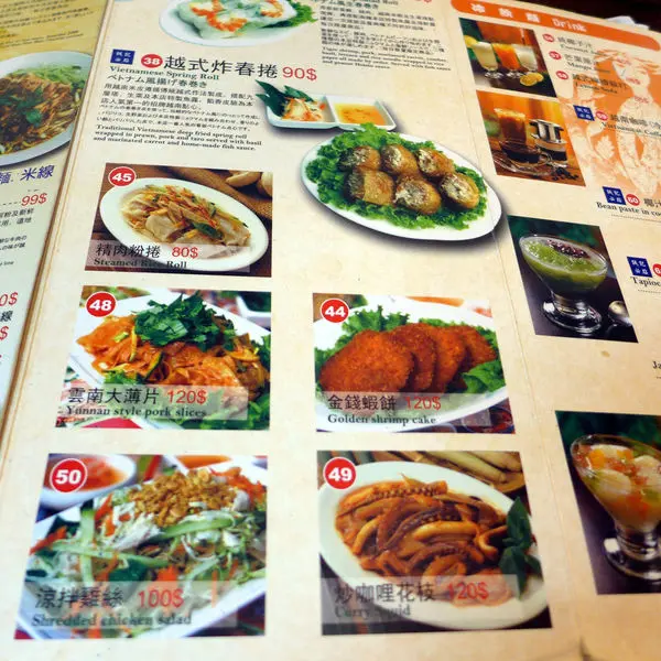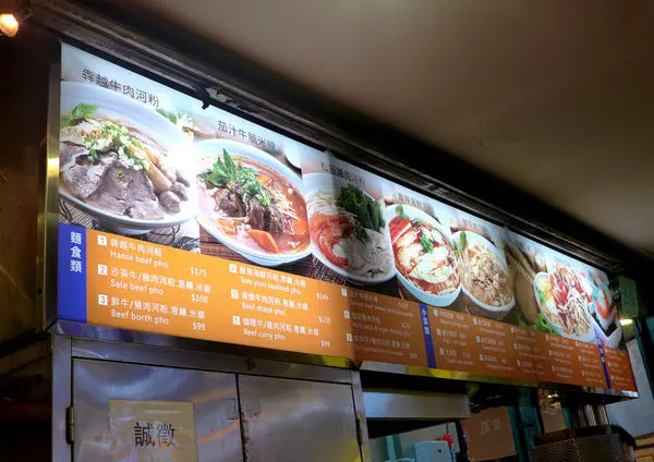 不過這日進去店裡後有點訝異它的空間,本來以為會很寬敞,但比我想像中還要小的多,我們被引領至樓下地下室的空間,走在陡峭的階梯上要小心。坐定位後翻開菜單,有河粉系列/牛肉麵料理/經典湯米線料理,當然也有單點的快炒選項。