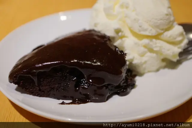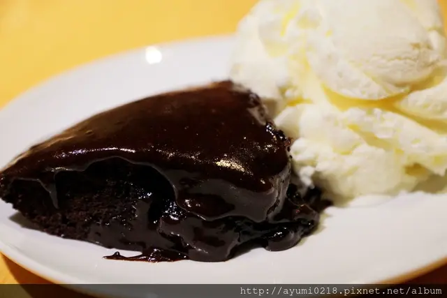 濕潤無比.巧克力濃郁卻不甜膩.熱呼呼的口感搭上巧克力醬以及香草冰淇淋