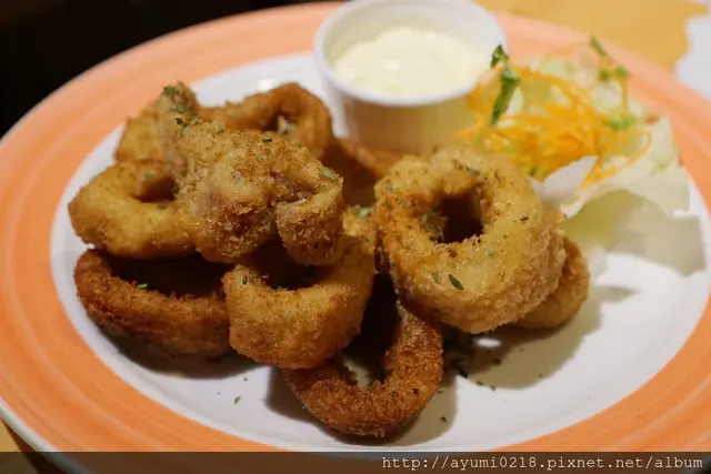 美式餐廳的花枝圈都很扁...然後多半是冷凍的