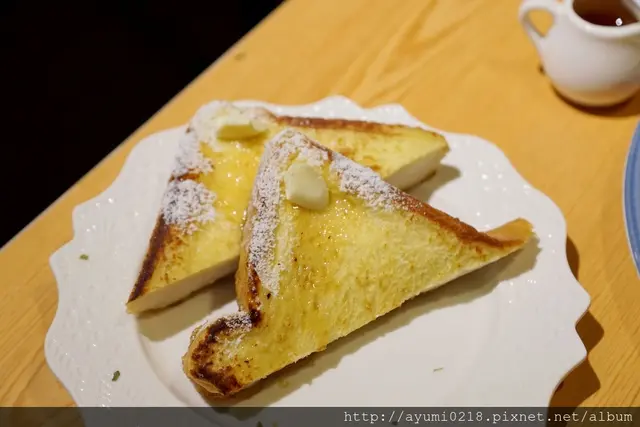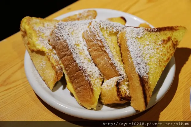 選用厚片土司兩片..沾上蛋汁間到金黃...撒上雪花糖粉