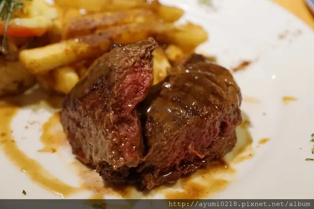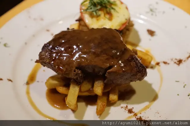 因為肉很香..上頭的醬汁也很有特色(介於紅酒與牛排醬之間)