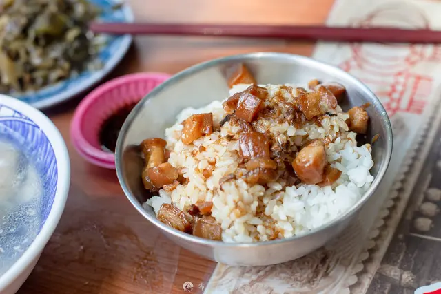 《江家原汁排骨湯》滷肉飯還蠻有水準的,有贏過阿桂姨,首先飯煮的還不錯,滷汁加上去之後,整個鹹香味十足,滷肉是帶皮偏肥,入口抿嘴都是滿滿的膠值感,油蔥的香氣也沒有少,整體的均衡感相當不錯,給過。