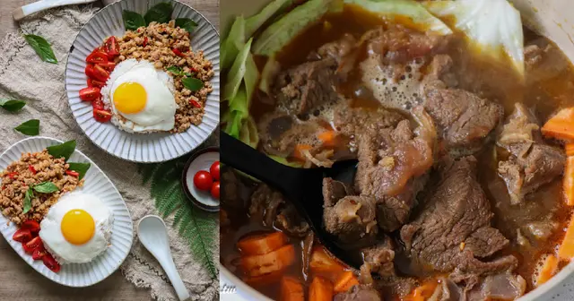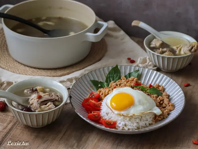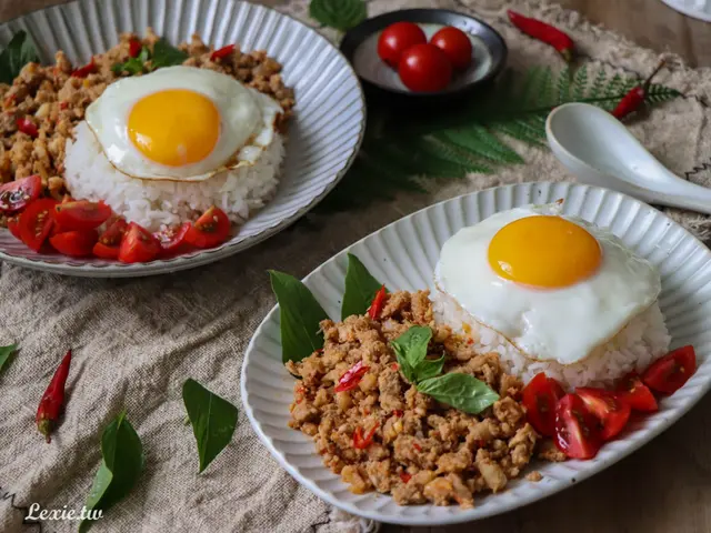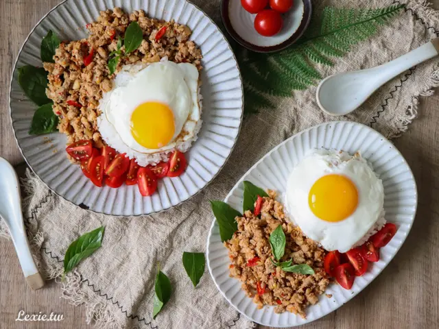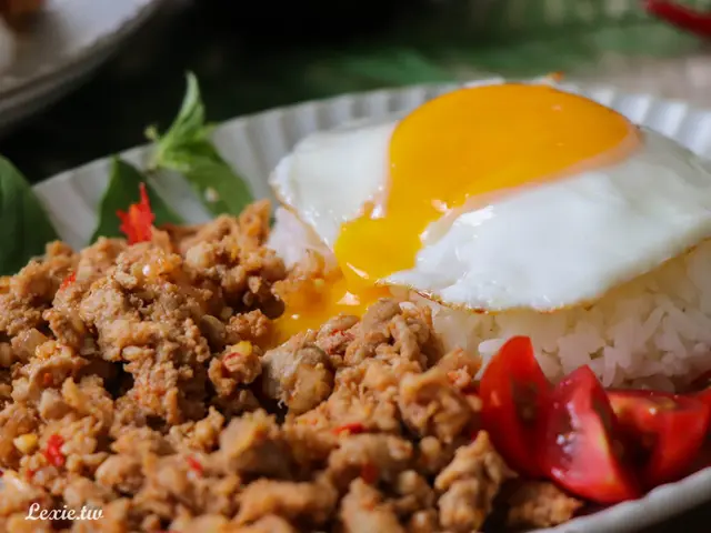 假日中午只要煮一鍋飯、煎顆蛋,把打拋豬肉隔水加熱,也是超快就能完成一餐了!