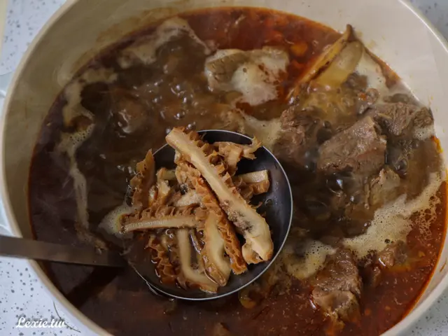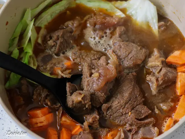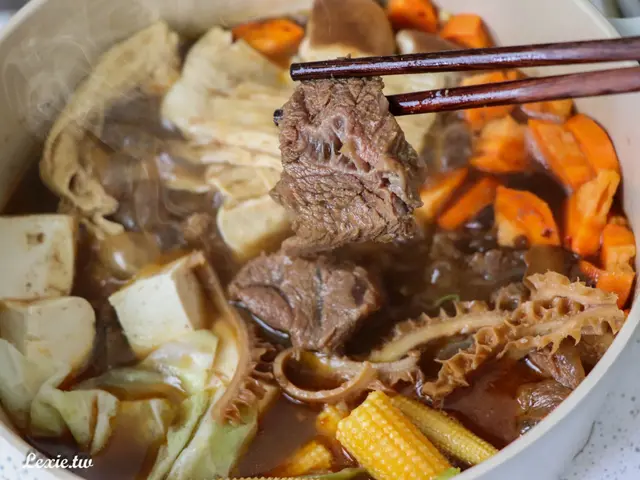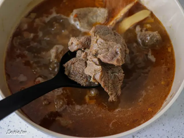 牛肉非常入味,除了幾塊太大的肉塊有覺得肉有點乾,絕大部分的肉吃起來都很軟嫩,有些帶皮帶筋,口感很棒,我覺得以這個價位來說,品質已經超出預期很多,硬要說缺點就是湯少了點,但自己加水就好了,這是我會想回購的鍋底,也很適合大家庭買喔!