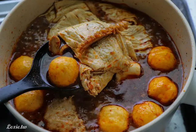 當然有滷味三寶一定要給他加進去煮,照片上傳IG限動大家紛紛說我太天才,竟然自己在家煮麻辣燙,殊不知這根本無腦到極點,把醬料加水、加冷凍滷味、丸子一起煮滾就好了,霹靂無敵簡單!