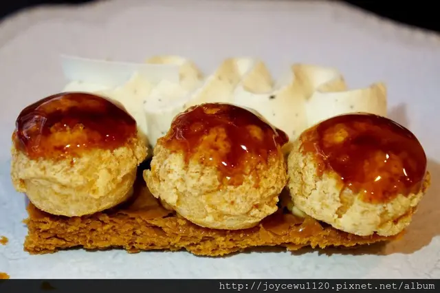 脆口焦糖搭配酥軟的泡芙皮口感極佳,濃醇卡士達奶餡~ 完全不膩口!