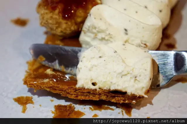 一旁的原味千層派搭配的是香草鮮奶卡士達,輕盈的口感搭配起來有著柔柔香氣
