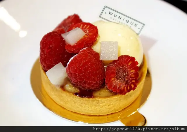 這款甜點店家堅持要有新鮮覆盆莓時才會出,嘿嘿很幸運的被我碰上啦!