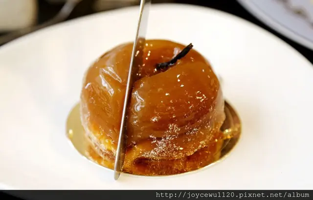 相當費時費工的經典法式甜點 將蘋果切成極薄片與焦糖、檸檬汁、肉桂一起熬煮,放入蘋果模型入烤箱
