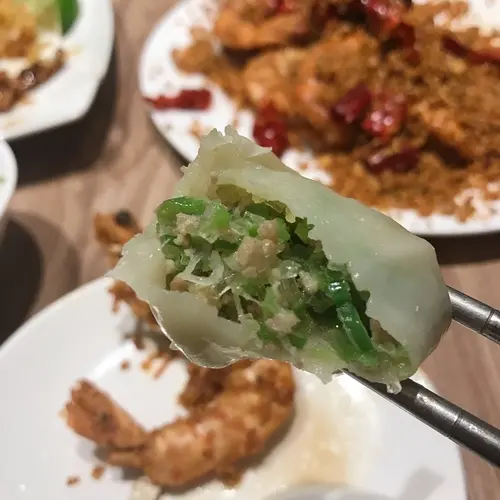一籠都是5顆,牛肉蒸餃沒什麼流漿的湯汁,而四季豆蒸較咬開後有特別觀察內餡,有細粉絲、四季豆的細切片和細碎絞肉,這是蒸餃當中吃起來較ok的