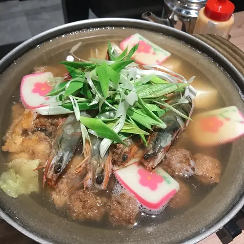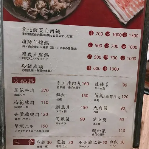 *🔸大鍋裡有蝦子、板豆腐、肉球、滷排骨、魚板,還有兩大盤的五花肉,店員會來隨時加湯