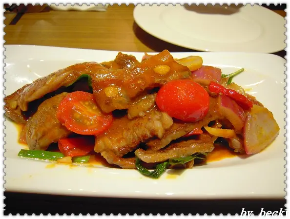 主菜上桌了,這是辣炒無骨牛小排,牛肉部份非常鮮嫰,配上一些蔬果一起炒更有鮮甜的口感。