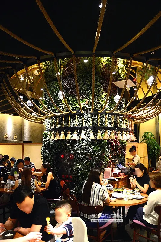 ▼餐廳的正中央,以一隻植披柱子為主體,連接著麻繩向餐廳四方放射狀延伸