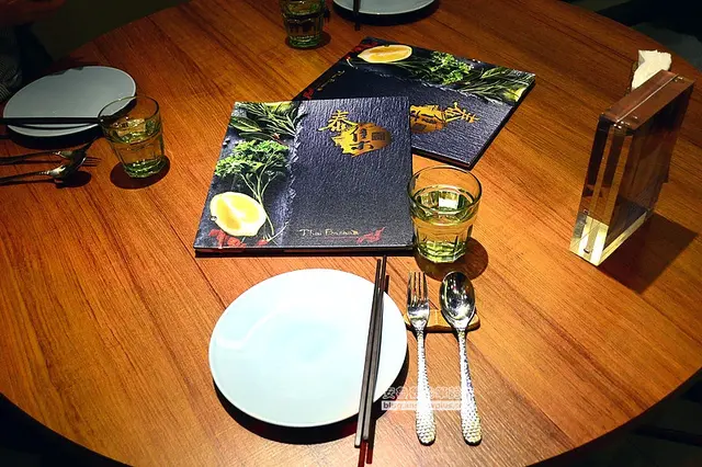 ▼服務人員帶領我們到座位上~桌上已經整齊的擺放好餐具、飲用水和菜單