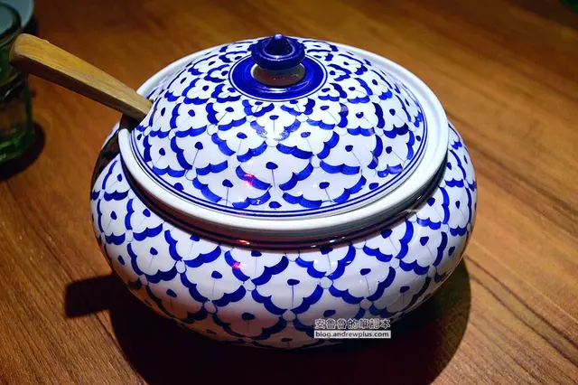 ▼首先上桌的是白飯,裝飯的容器是一個青花瓷鍋,有別一般泰國餐廳用錫鍋,反而是走中國風~
