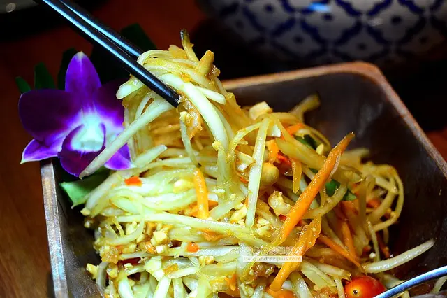 ▼酸辣的程度剛剛好開胃,實的口感中帶著脆度,酸中帶甜,青木瓜絲的濕潤程度很剛好,很好入口,辣味帶後勁唷!