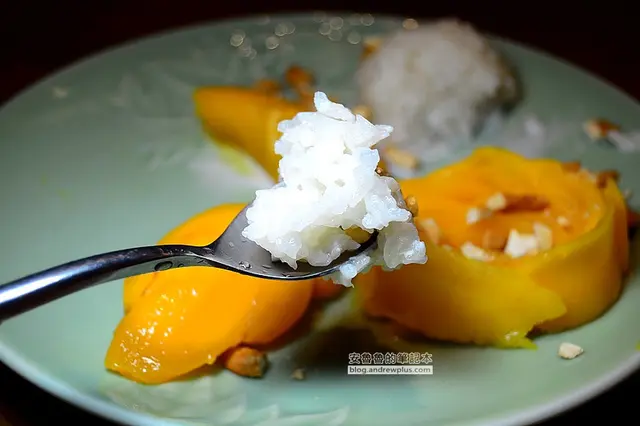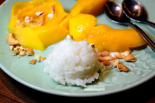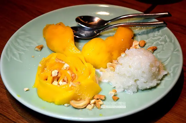 餐後的甜點選了芒果糯米,軟黏黏的糯米吃起來有點像米糕,但是味道比較甜一些,配腰果碎粒和香甜不帶酸味的芒果,就是一道增添飽足感的飯後甜點!
