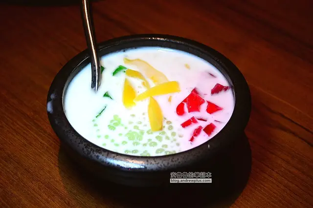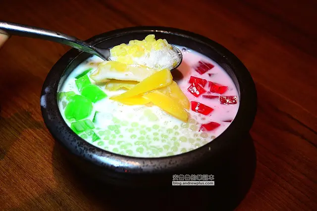 整體喝起來非常的香甜,而且椰奶的味道濃郁,裡面還有椰果、亞答枳、紅毛丹、西米露、波羅蜜,還有泰國粉條