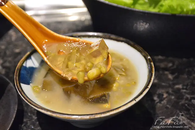 綠豆湯不會太甜,我把它跟水果涼粉兩種加在一起享用覺得頗好吃,大概吃了兩三碗。