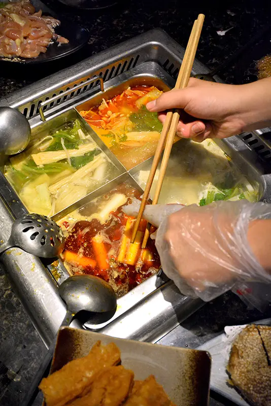 海底撈的火鍋是特別訂製款,除了我們常見的兩種口味鴛鴦鍋,