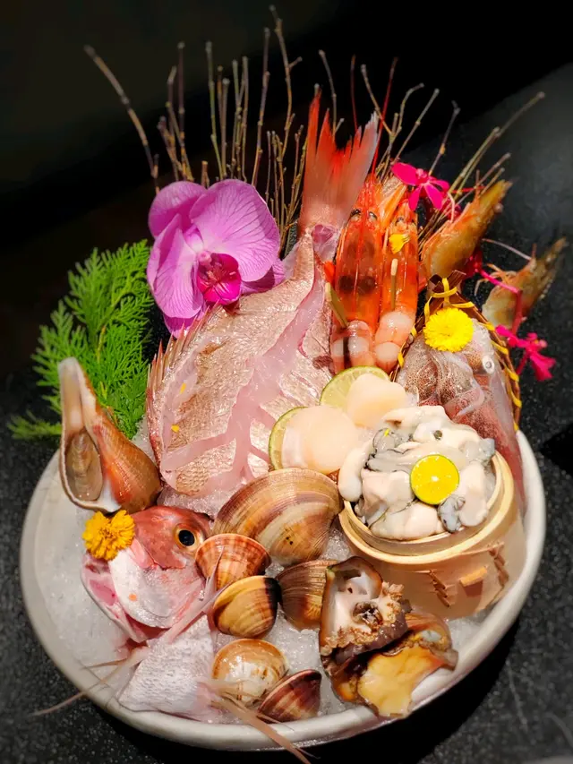 📍限量現流海鮮拼盤~鯛魚(肉質細嫩味道鲜美)北海道干貝(鮮甜、帶子味濃郁)、牛奶貝(肉質飽滿圓潤)、鮑魚(鮮甜彈牙)、翡翠螺(肉質彈牙、鮮味)、東石鮮蚵(飽滿鮮甜)、文蛤(肥嫩)、紅蝦(爽口)、基隆鎖管(軟嫩)等⋯超級新鮮生猛高級海鮮料🦐🦑