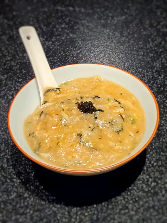 📍雜炊~食完火鍋,鍋內集結了所有精華,利用鍋底剩下的湯加上白飯煮成粥,然後加入吻仔魚、鮮雞蛋、海膽、撒上海苔、蔥花後即可起鍋,最後以松露作點綴。味道非常濃郁、鮮美甘甜層次豐富的海膽雜炊。👍👍👍🥰🥰🥰