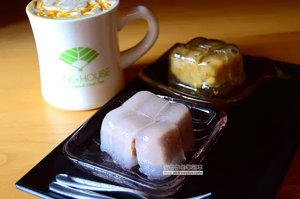 涼菓子的外皮看起來跟前面幾個不太一樣,呈乳白狀而且散發出淡淡杏仁香,配上鬆綿中帶有顆粒感的芋頭,甜度適中,喜歡芋頭口味的人應該都會愛上這顆涼菓子!
