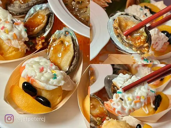 開胃佳餚又這麼澎派,大海的雙寶一次吃個夠,彈牙肉多汁的龍蝦、超Q有咬勁的鮑魚~
