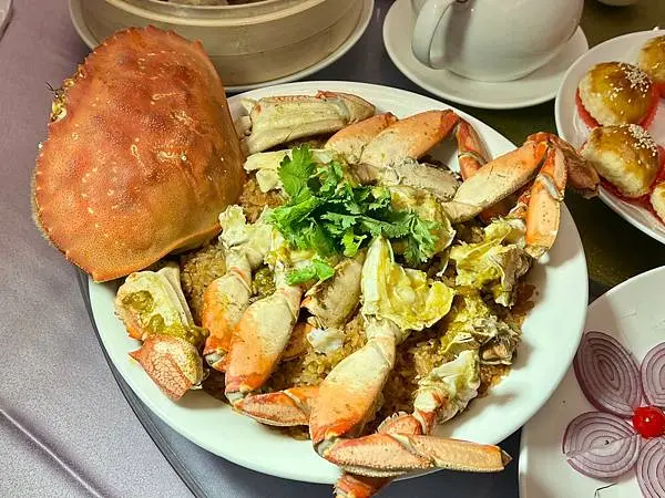 御珍軒挑選巨無霸的新鮮黃金蟹,用最簡單的清蒸方式,就能吃到最新鮮又飽滿的蟹肉,底下的油飯吸收螃蟹的精華~