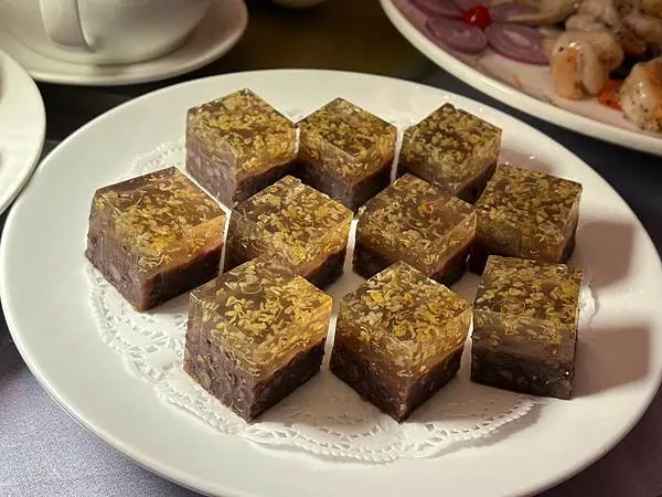 紅豆桂花糕完全不會太甜,吃得到粒粒分明的軟綿紅豆,桂花的香氣充滿口中,劃下最棒的用餐句點~吃完也不會有沉重的負擔,這次御珍軒用餐滿意度我給一百分!