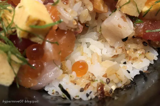 各種刺生丁與紫蘇絲、鮭魚卵混合再一起的口味