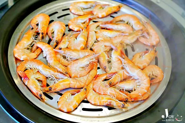 上桌時還在透明盤上機動跳著的活蝦,不受控的活蝦們,服務員幫我們放入蒸盤上時還費了一番力氣!