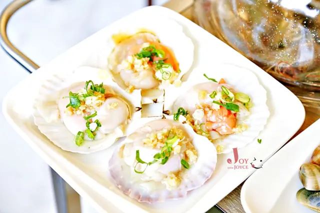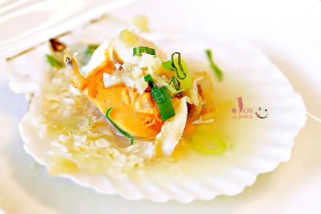 扇貝上已經放了特調蒜蓉,蒸煮後海鮮味與蒜香融合呈現迷人滋味,好吃極了!