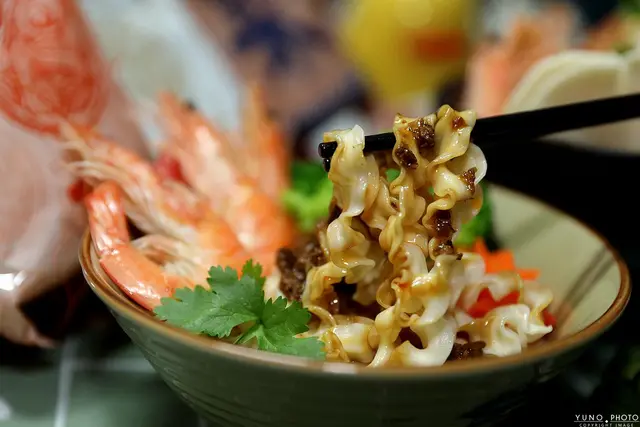 食材的部分可以依個人喜好添加蔬菜、煎蛋或是火鍋料和川燙的鮮蝦都很適合
