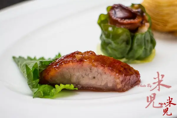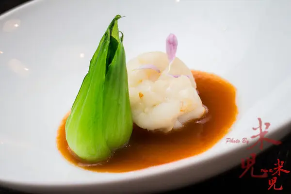 龍蝦汁水晶蝦球,把澎湖明蝦用廣東傳統油泡蝦仁手法,結合西方龍蝦湯而呈現出來的一道菜,蝦仁口感彈脆,與鮮美的龍蝦湯相互呼應。