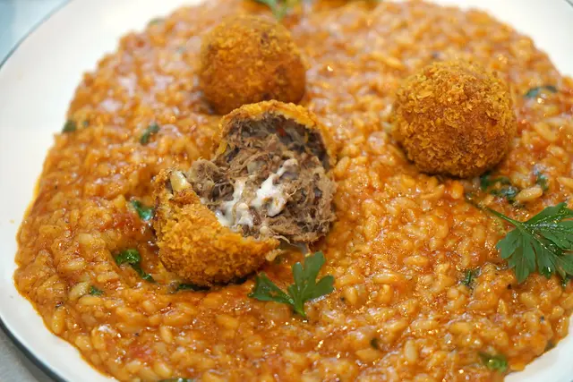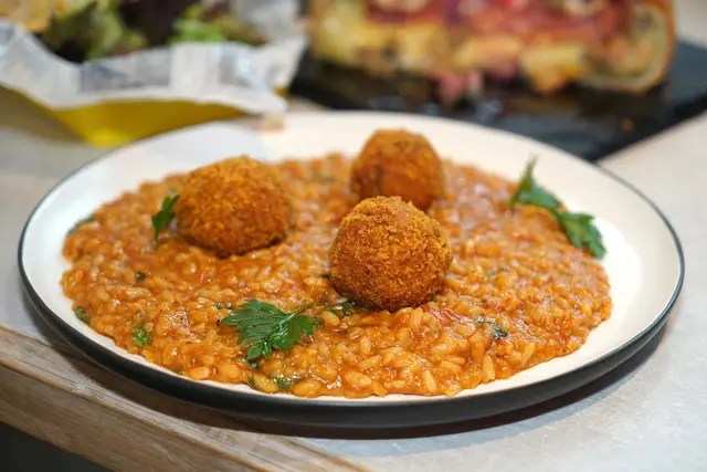 底下的紅醬燉飯是義大利微硬的口感、非一般紅醬的酸味、加入了蔓越莓汁的果甜感